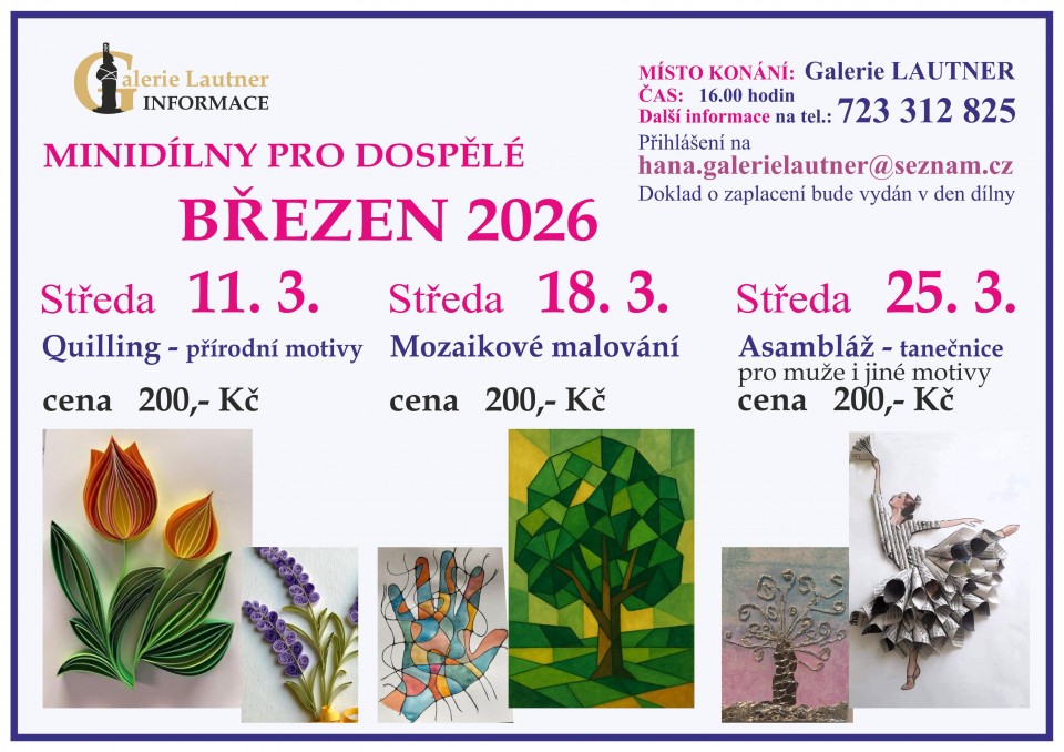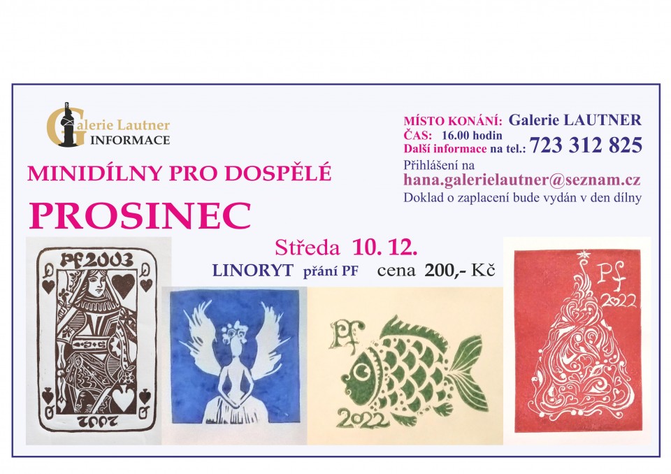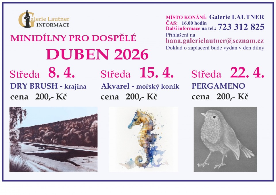 Platba hotově v galerii Lautner nebo na č.ú.: 288108829/0300, VS u dílny, do poznámky - jméno plátce
