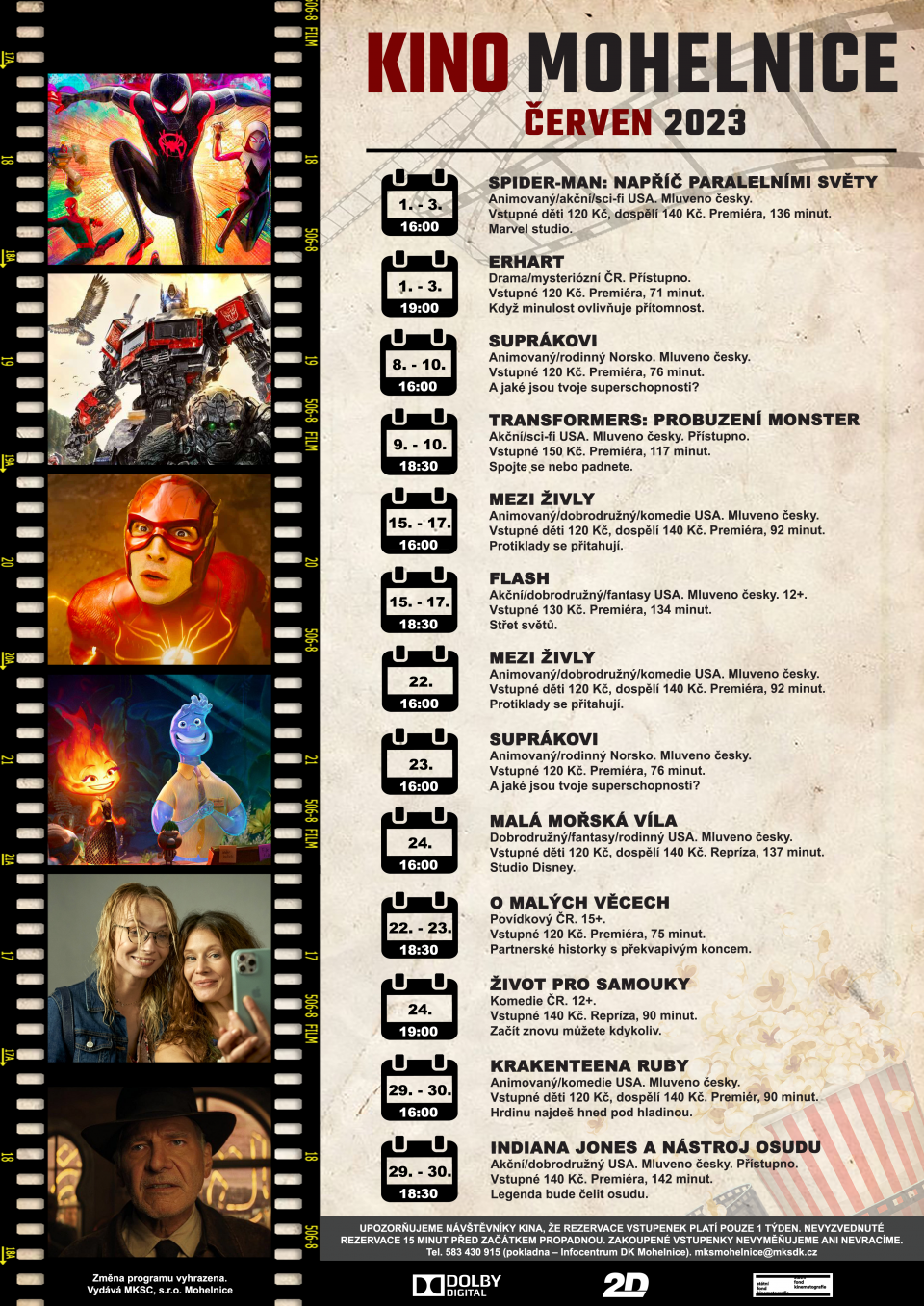Upozorňujeme návštěvníky kulturních akcí, že rezervace vstupenek PLATÍ POUZE 1 TÝDEN. Pak propadá a místa jsou uvolněna do prodeje. 7 dní a méně před akcí už nelze vstupenky rezervovat.